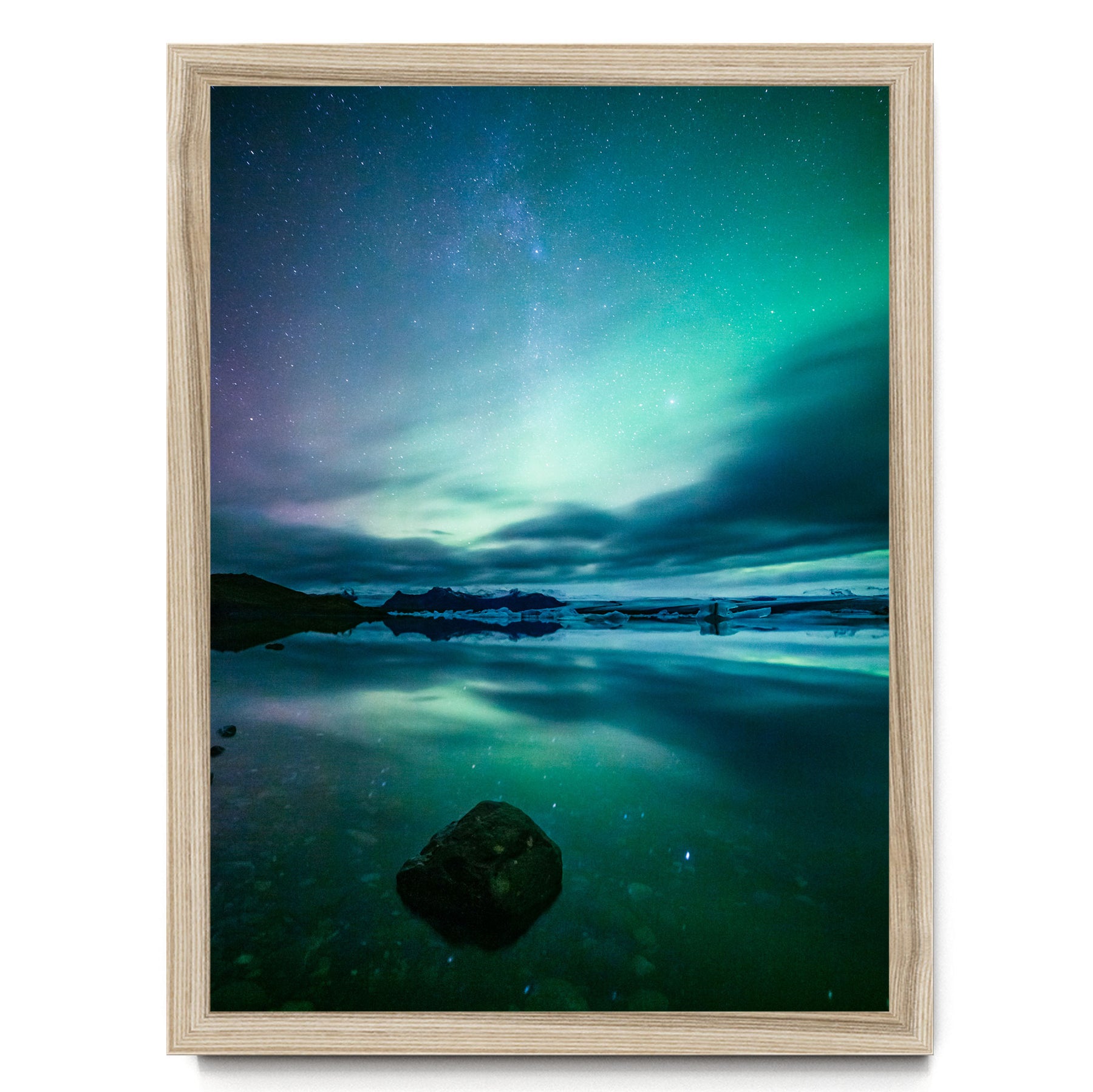 Northern lights (Aurora borealis) over glacial lake, Iceland