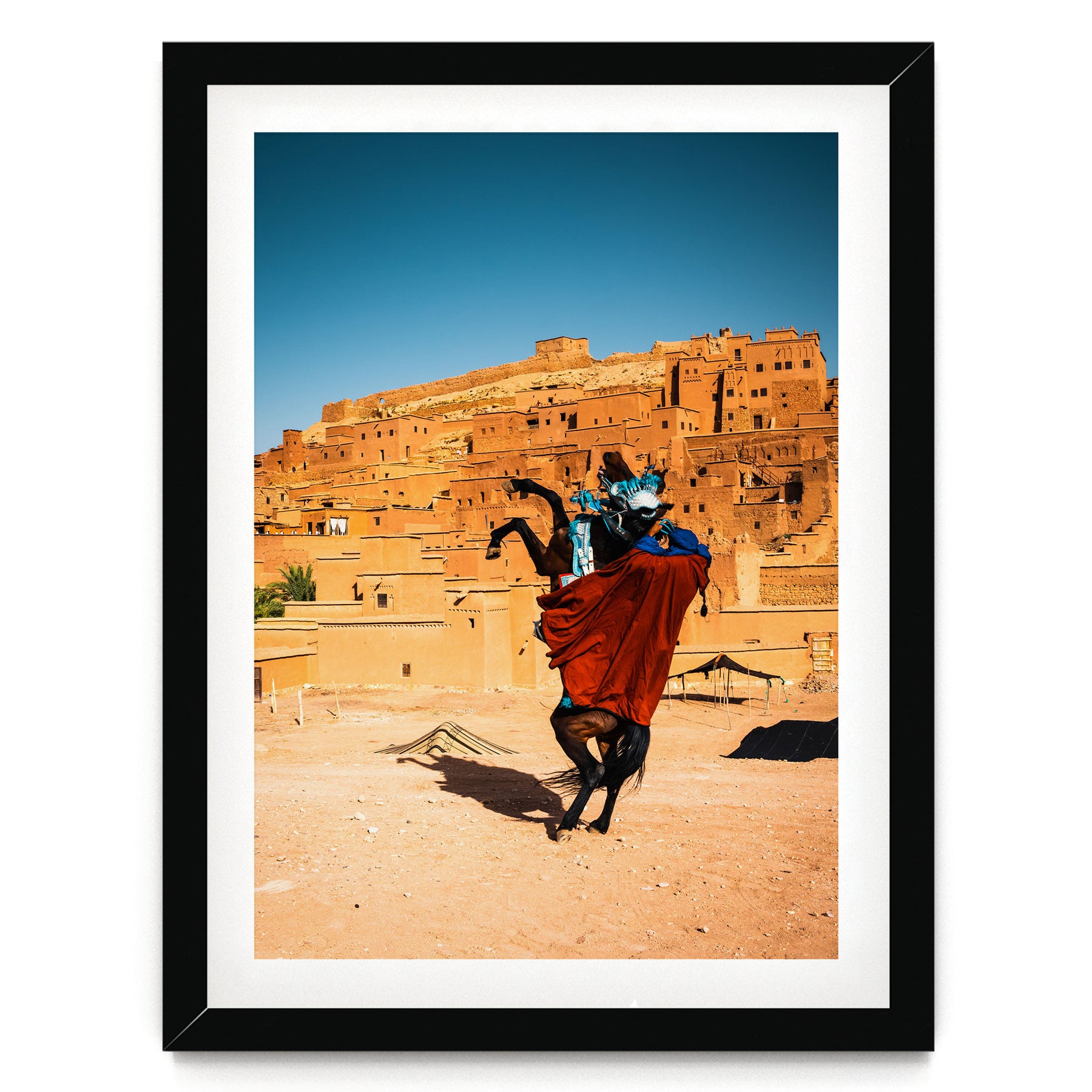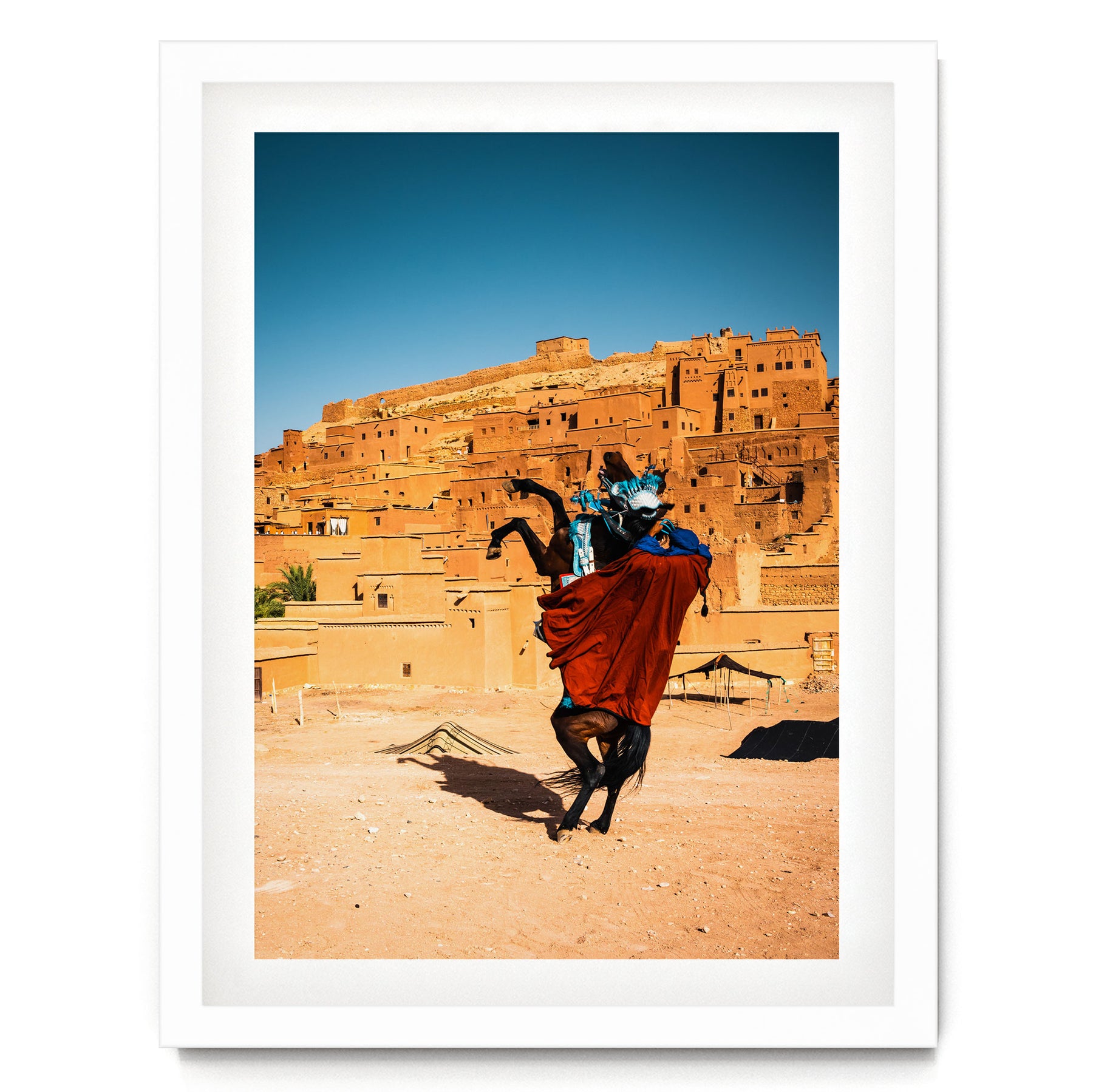 Cavalier and horse wearing traditional dress, Ait Benhaddou, Morocco