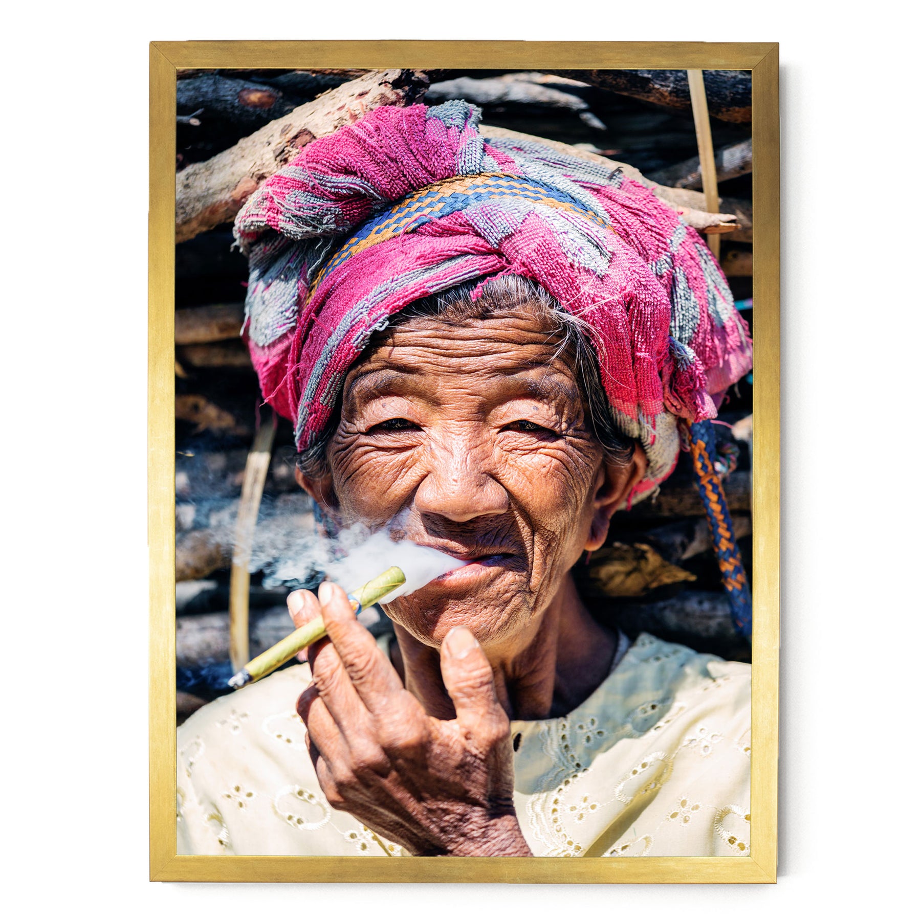 Elderly woman smoking traditional cigar, Myanmar, Southeast Asia