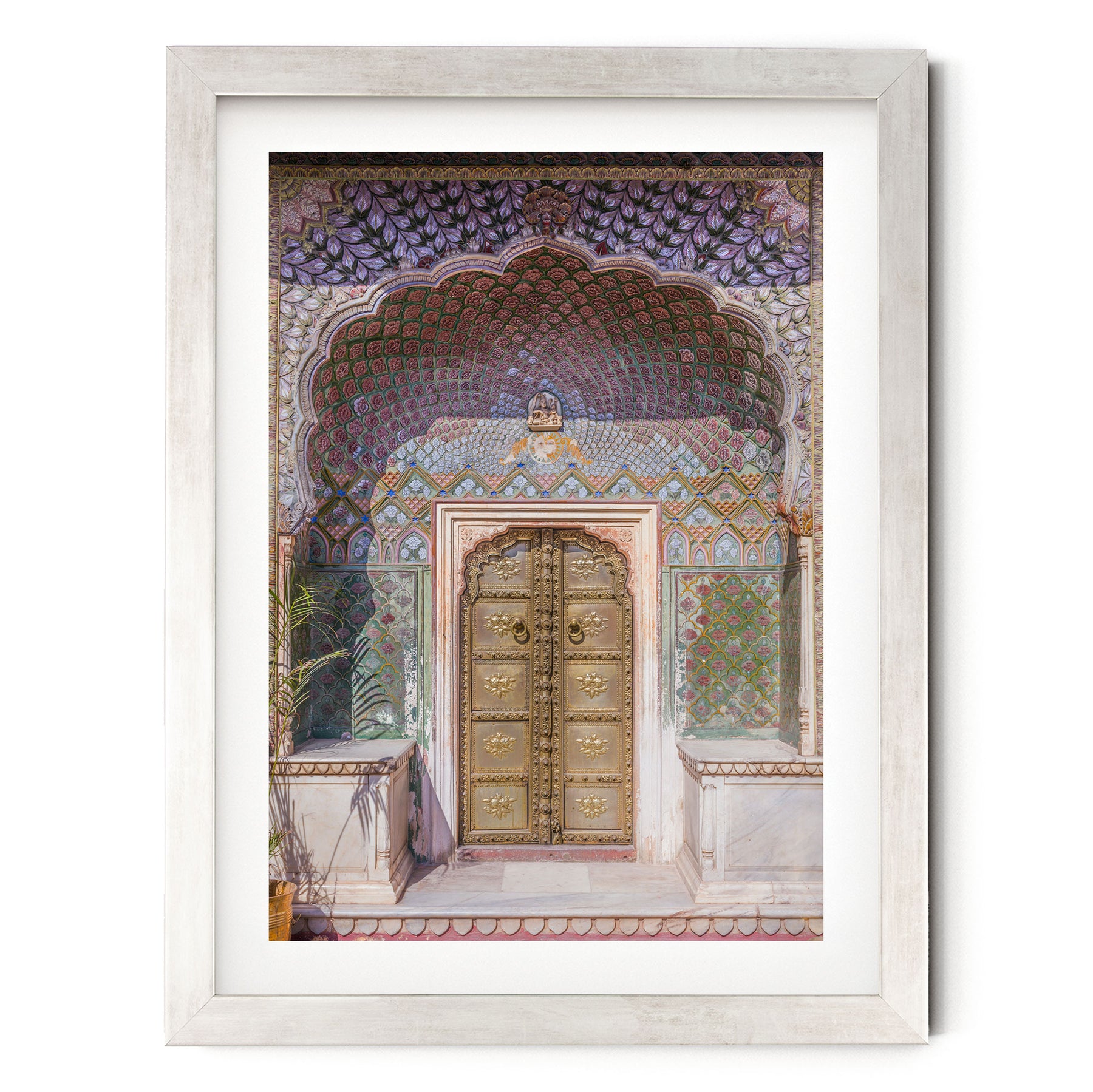 - White Mat option = the print is mounted on a 2 inch white mat (matboard). The size you order includes the white mat.